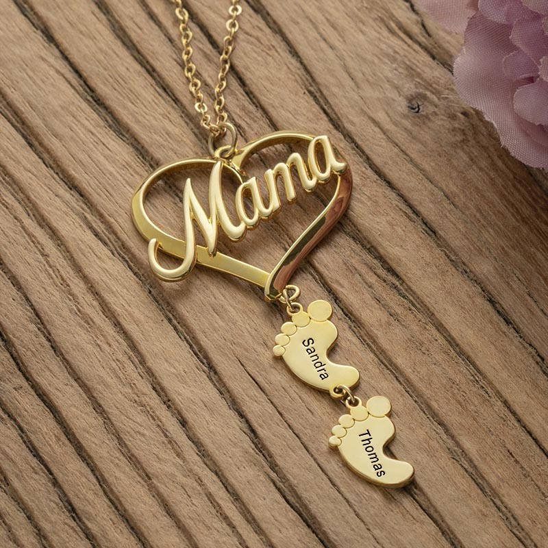 Personalized Love MaMa Heart 1-10 Baby Feet Charms Name Necklace