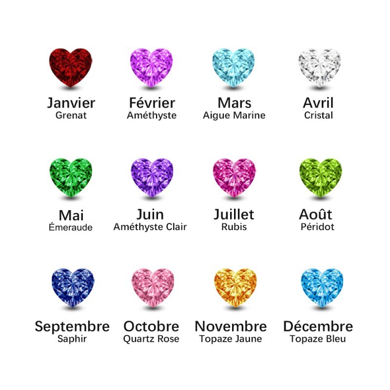 Collier Coeur Personnalisé Avec Prénoms Et Pierres De Naissance Des Enfants Pour La Fête Des Mères