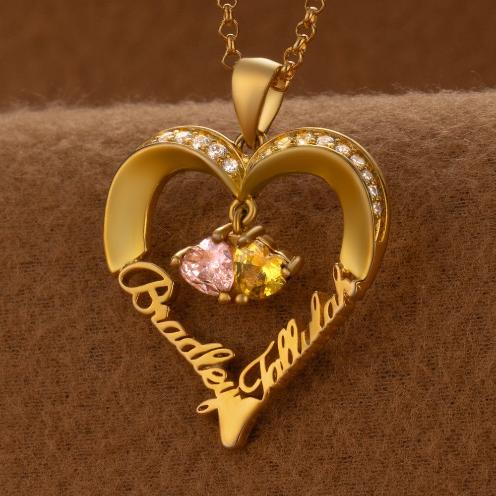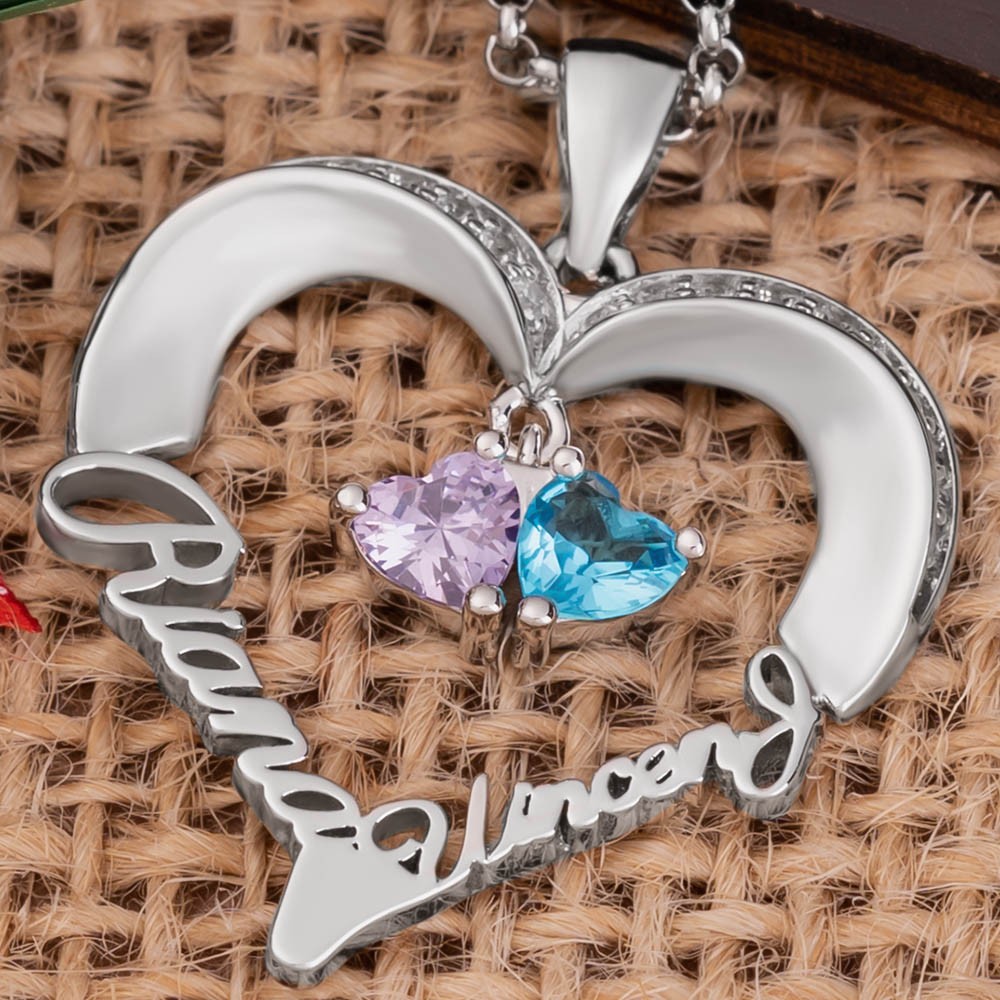 Colliers coeur personnalisés avec 2 noms et pierre de naissance pour la petite amie de l'âme sœur la Saint-Valentin