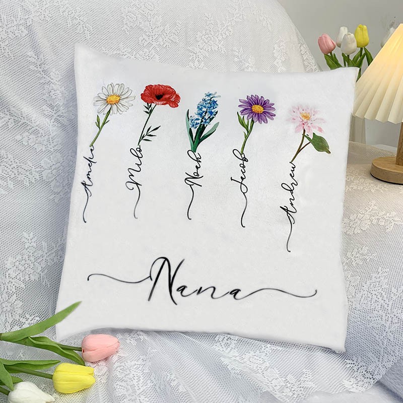 Custom Nana Pillow With Kids' Names & Birth Month Flowers For Mother's Day