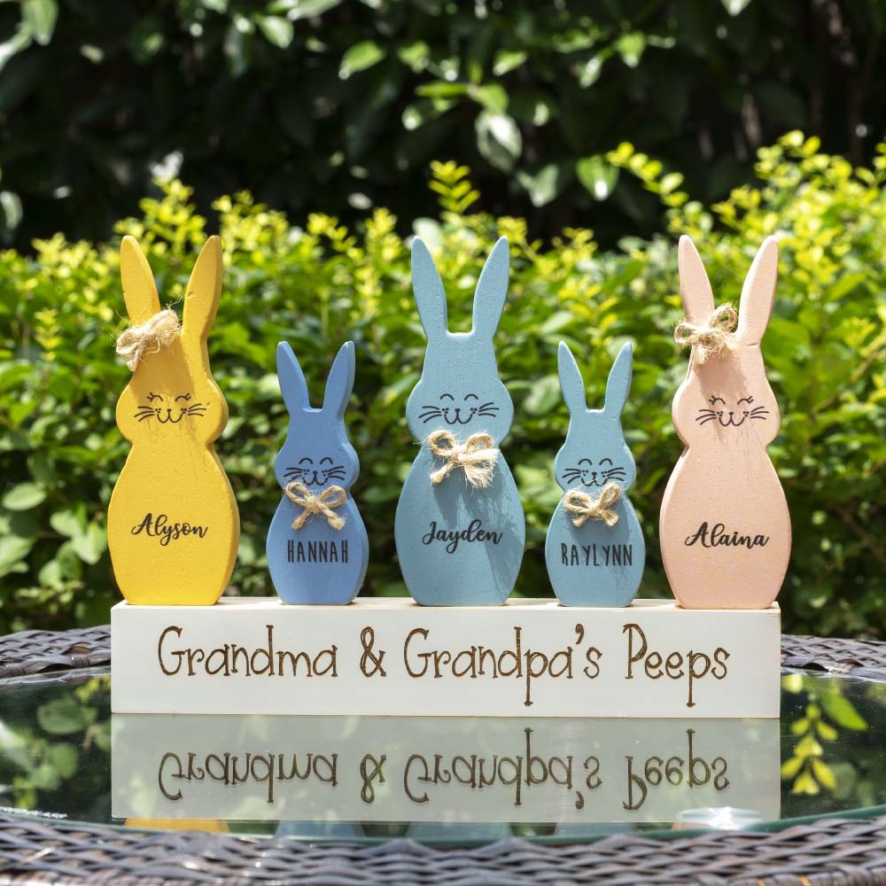 Easter Peeps Sign Personalized Engraved Name Wooden Bunny Home Decor Grandpa Grandma Gift